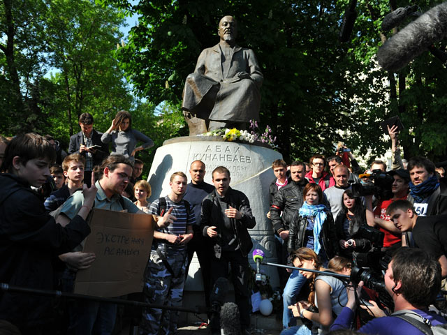 У памятника казахскому поэту Абаю Кунанбаеву на Чистопрудном бульваре в центре Москвы вечером в субботу стали сбираться сторонники оппозиции. Среди собравшихся преимущественно молодые люди, многие из них пришли с приколотыми белыми лентами оппозиции. Также среди пришедших много молодых людей с короткими стрижками, в шарфах цветов имперского российского флага. Собравшиеся встали в полукруг рядом с клумбой напротив памятника, начали аплодировать и топать ногами.