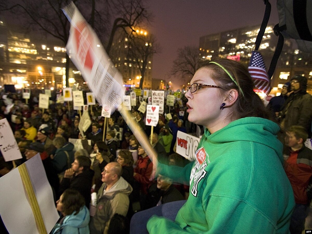 Неслыханное покушение губернатора на права профсоюзов спровоцировало шумные многотысячные демонстрации, судебный иск и сбор подписей за проведение выборов по отзыву губернатора. Суд признал конституционность нового закона. Выборы 5 июня должны были дать ответ на вопрос, на чьей они стороне в принципиальном идеологическом противостоянии момента: за республиканский тезис "меньше государственных расходов и меньше правительственного вторжения в рыночные процессы" или за демократический "больше расходов и более значительная роль правительства".