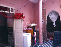 Попасть в святая святых марокканской семьи практически невозможно: гостей здесь не принимают. В рияде, как правило, живут три семьи плюс пожилой дядюшка — местный патриарх и, кажется, тиран. Когда дядюшка дома, ни один лишний звук не нарушает его покой, даже груднички не плачут. Впрочем, это всё одна семья: три брата со своими женами и несметным количеством детей, которые разбегаются при виде незнакомцев, продолжая с любопытством выглядывать из углов. У каждой пары своя комната размером примерно 7х2 м и своя кухня чуть меньше комнаты. На вопрос, почему нельзя сделать одну кухню для всех, обычно отвечают так: «Женщины не должны сталкиваться, иначе в семье не будет покоя». При этом на всех жителей рияда всего одна ванная комната и ни в одном проеме нет дверей: вместо них висят занавески. Зимой, когда температура в Марракеше может опускаться до пяти градусов, обогревать рияд не так просто. Электричество стоит очень дорого — счет может достигать €200–250 в месяц, а зимой и того больше. Но только никто за него не платит. Достаточно просто протянуть провод в обход счетчика — и жги себе сколько хочешь. На вопрос к жителю Марракеша: а что, никто не контролирует? — в ответ обычно следует знакомая хитроватая улыбка: Восток.
