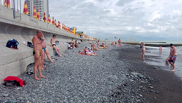 Самый старый общественный пляж города, Ривьерский, в список почему-то не попал. Но купаться я бы не стал там и за деньги — пляж находится в дельте реки Сочи: во время дождя, когда речная вода выносит в море потоки нечистот, вода коричневеет и остается такой неделями. К тому же рядом с акваторией скрипит лебедками подъемных кранов морпорт, иногда дополняющий курортный загар пятнами нефти или мазута.