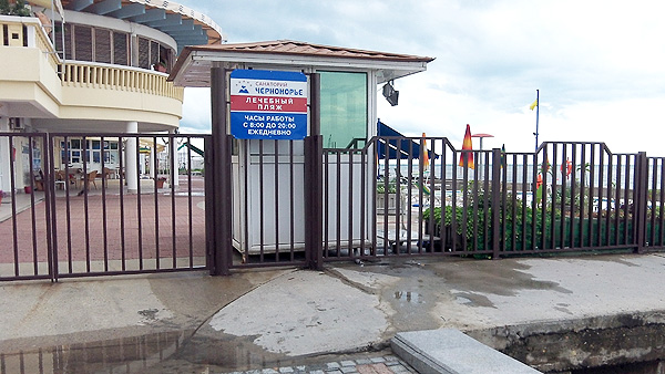 Вскоре путь преграждает забор санатория "Черноморье". Здравница принадлежит РЖД, у нее пять звезд, поэтому пройти к морю стоит 300 рублей. В эту стоимость щедро включены зонтик и шезлонг.