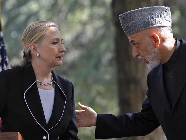 На встрече с сотрудниками американского посольства Клинтон сообщила, что администрация США включила Афганистан в число своих ключевых союзников, не входящих в НАТО. "На предстоящих переговорах с афганским президентом Хамидом Карзаем я официально объявлю о решении президента Барака Обамы включить Афганистан в число ключевых союзников США, не входящих в НАТО", - цитирует госсекретаря США агентство ИТАР-ТАСС.