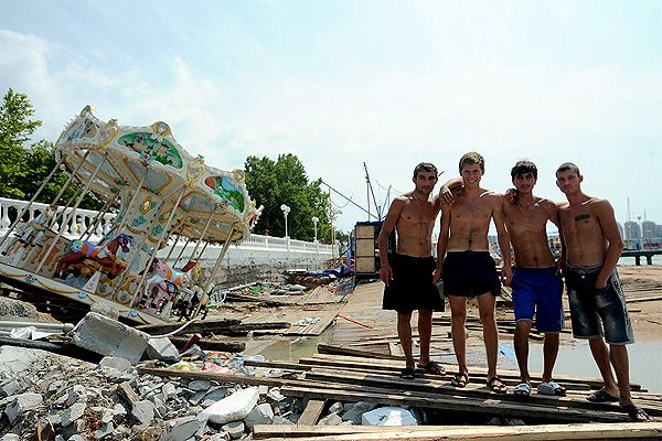 Молодые рабочие из Северной Осетии работали в парке аттракционов на пляже, куда они приехали подработать в летний сезон. Когда началось наводнение, они не раздумывая бросались в воду за людьми, которых уносил сильный поток воды.