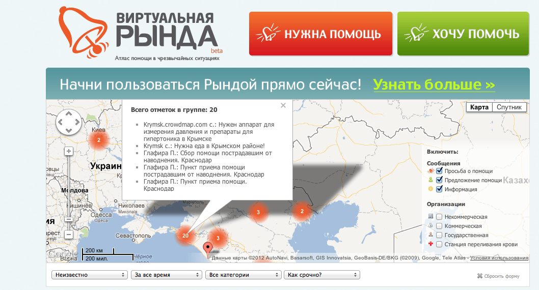 Портал «Координация помощи пострадавшим от наводнения в Крымске»