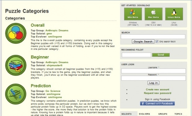 Foldit доступна для различных ОС. Для начала необходимо зарегистрироваться на сервере и скачать игру. После этого рекомендуется пройти тренировочные уровни.