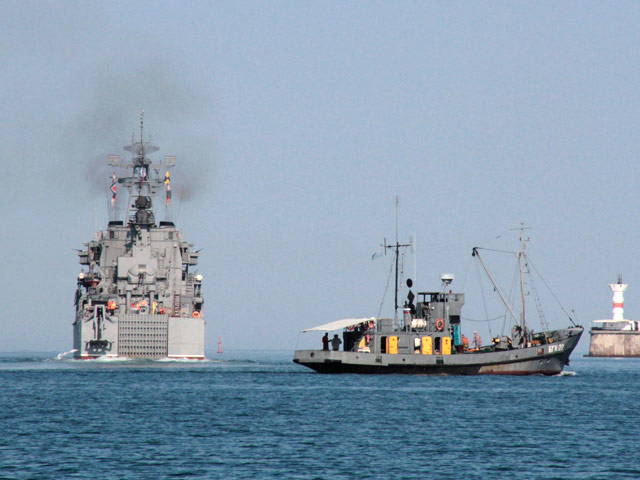 Десантный корабль "Цезарь Куников" Черноморского флота в среду вышел в Средиземное море, сообщил "Интерфаксу" источник, знакомый с ситуацией. "Корабль в воскресенье получил приказ следовать в Средиземное море… Он будет решать задачи боевой службы. Планом похода предусмотрен его заход в сирийский порт Тартус для пополнения запасов. На борту корабля находится подразделение морской пехоты", - уточнил источник. Он также напомнил, что курс на Средиземноморье взял также спасательный буксир "Шахтер". Ранее в Средиземное море вошел спасательный буксир СБ-5.