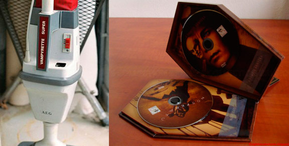 Пылесос "Вампайр". Фото: Катрин Зоннтаг. Коллекционное издание фильмов Мурнау "Носферату" режиссера Мурнау и "Тень вампира" режиссера Мурнау, фрагменты которых Зоннтаг использовала в своем видео. Фото: http://nighthecamehome.blogspot.com/2011/08/nosferatu-shadow-of-vampire.html Понятно, почему Беккер выбрала этот фильм: он в немецкой традиции, наследует тому, что делает знаменитый современный художник и теоретик кино Харун Фароки. Он часто в своих фильмах часто с помощью подборок сцен из мирового кинематографа исследует ту или иную социальную проблему, а в одном из фильмов остроумно показывает внутреннее состояние участников бизнес-переговоров, монтируя его с рекламным роликом, в котором описан принцип действия нового станка, инвестиции в производство которого бизнесмены обсуждают.