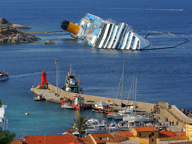 Девятипалубный круизный лайнер длиной корпуса почти 300 м, совершавший путешествие по Средиземноморью с 4,2 тыс пассажиров и членов экипажа на борту, вечером 13 января напоролся на риф вблизи острова Джильо.
