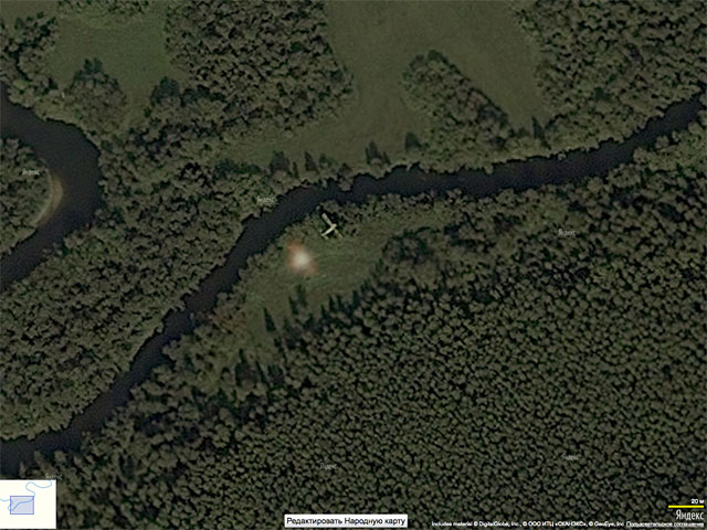 Гражданский активист Данила Линдэле выложил в своем микроблоге в Twitter'е ссылку на фрагмент карты окрестностей города Серова, откуда взлетел пропавший Ан-2, на которой отчетливо видно небольшое воздушное судно.