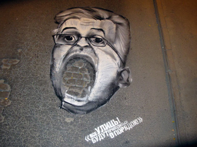 Плачевная ситуация с дорогами в Екатеринбурге стала темой для творчества неизвестных художников. Они по-своему оценили усилия руководителей города по улучшению состояния дорожного полотна, украсив его портретами чиновников, выполненными в виде шаржей. Частью эскизов стали также ямы, ухабы и дорожные неровности, передает Ura.ru.