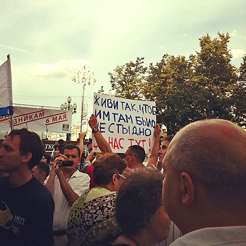 С трибуны митинга было объявлено, что один из фигурантов «болотного дела» Ярослав Белоусов объявил бессрочную голодовку протеста.