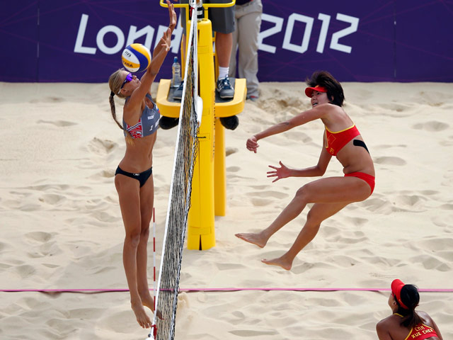 Россиянки Анастасия Васина и Анна Возакова сенсационно победили бронзовых призеров Олимпиады-2008 китайский дуэт Си Чжан/Сюэ Чень на старте турнира Игр-2012 по пляжному волейболу.