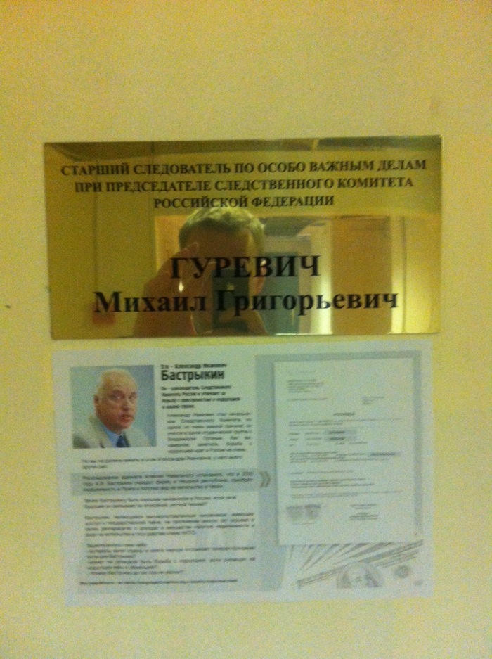 прямо у кабинета следователя Гуревича (первый глава след группы по "болотному делу", санкционировавший все обыски и первые аресты).