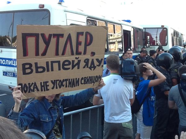 18.27 Timur Khorev: По рации была команда брать всех. Женщину с этим плакатом упорно не берут. Другие одиночные пикеты мгновенно винтили.