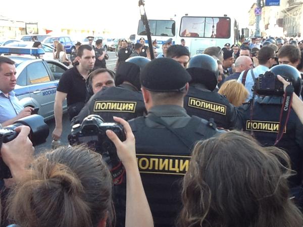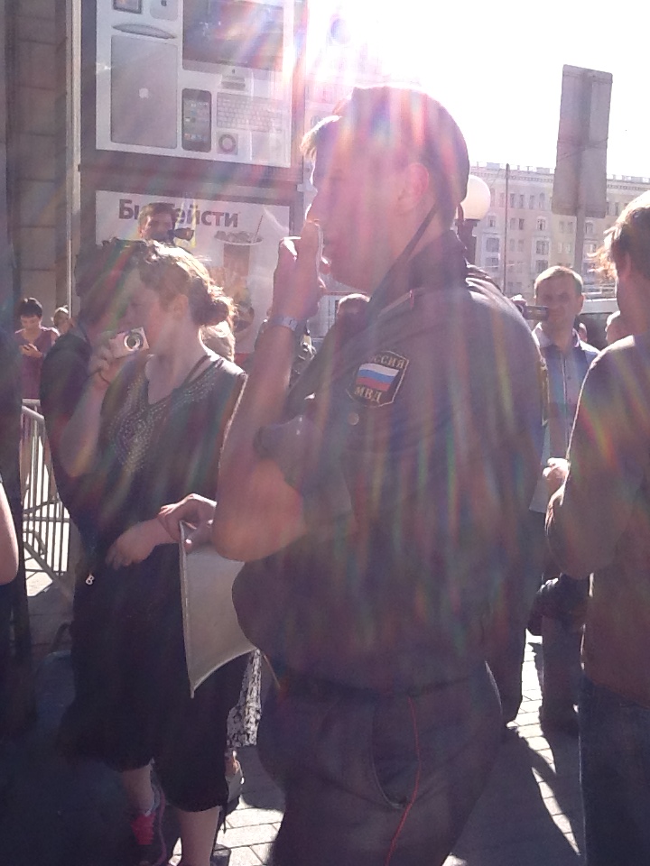 18.10 Анастасия Петрова PublicPost: Не найдя оппозиционеров, полицейские говорят в мегафон: "Уважаемые репортеры, освободите проход, вы мешаете проходу граждан!"