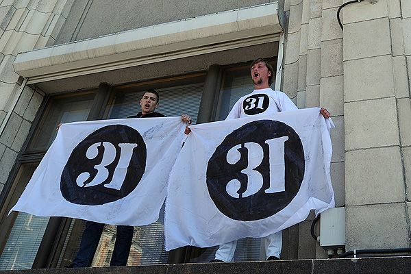 Фото: ИТАР-ТАСС На Триумфальной площади прошла очередная акция в защиту свободы собраний. Это первая акция “Стратегии-31, после принятия поправок в закон “О митингах”, значительно увеличивающих штрафы за участие в несанкционированных мероприятиях. PublicPost вел трансляцию с места событий.