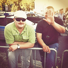 | Неизвестный, напавший на корреспондента The New Times (слева) |