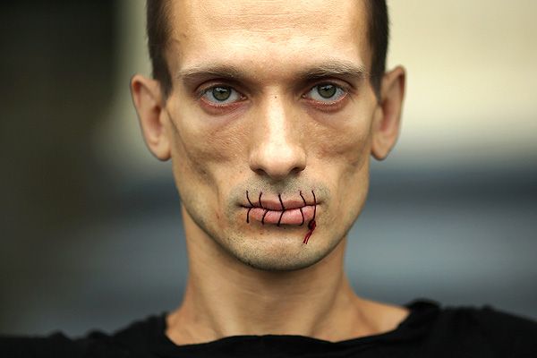 Фото: Reuters Художник Петр Павленский прославился своим выступлением в защиту Pussy Riot. 25 июня он зашил себе губы красными нитками и вышел с одиночным пикетом к Казанскому собору в Санкт-Петербурге. В разговоре с PublicPost художник объяснил, чем зашитые губы лучше массовой демонстрации.