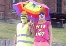 В субботу Тейвайнен проводил экскурсию World Political City Walk, в рамках которой рассказал о проходящих в Финляндии акциях солидарности. Две девушки в цветных платьях и балаклавах иллюстрировали рассказ профессора. "Акция в поддержку Pussy Riot" была на самом деле просто рассказом для эксурсантов о том, что происходит", - сказала Челышева.