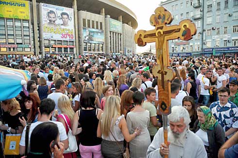 Перед началом концерта королевы поп-музыки православные активисты ходили с крестом вокруг спорткомплекса "Олимпийский", таким образом выражая протест по отношению к концерту, и гражданской позиции звезды к группе Pussy Riot.
