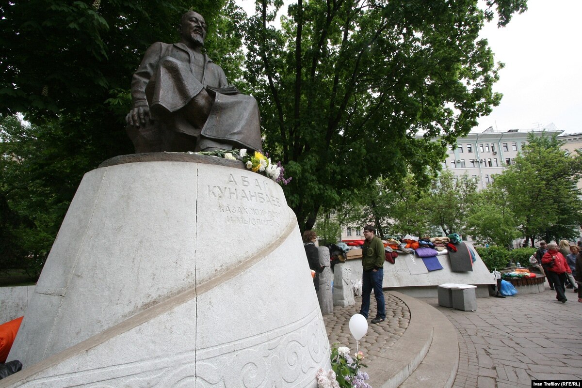 Именно возле его памятника на Чистопрудном бульваре в мае этого года активисты разбили протестный лагерь, получивший название "ОккупайАбай". Акция проходит в формате поэтического вечера. Об этом Радио Свобода рассказал один из участников движения "ОккупайАбай" Валерий Золотухин: