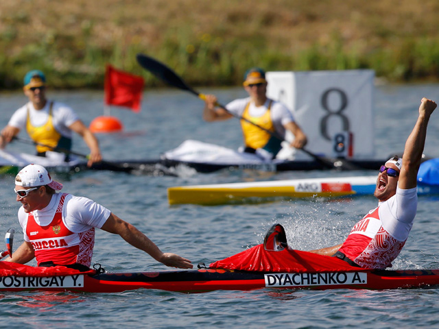 А главный успех к российским гребцам пришел в заезде байдарок-двоек. Юрий Постригай и Александр Дьяченко стали олимпийскими чемпионами в гребле на байдарке-двойке на 200 м. Они уверенно опередили в финале белорусов Романа Петрушенко и Вадима Махнева и британцев Лайама Хэта и Джона Шофильда.