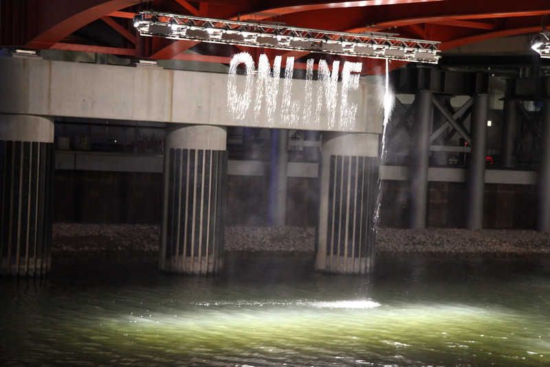 А это - сюрприз вечера. Под мостом по пути к метро с потолка льется вода. И буквально на доли секунды получаются слова. :) Очень необычно.