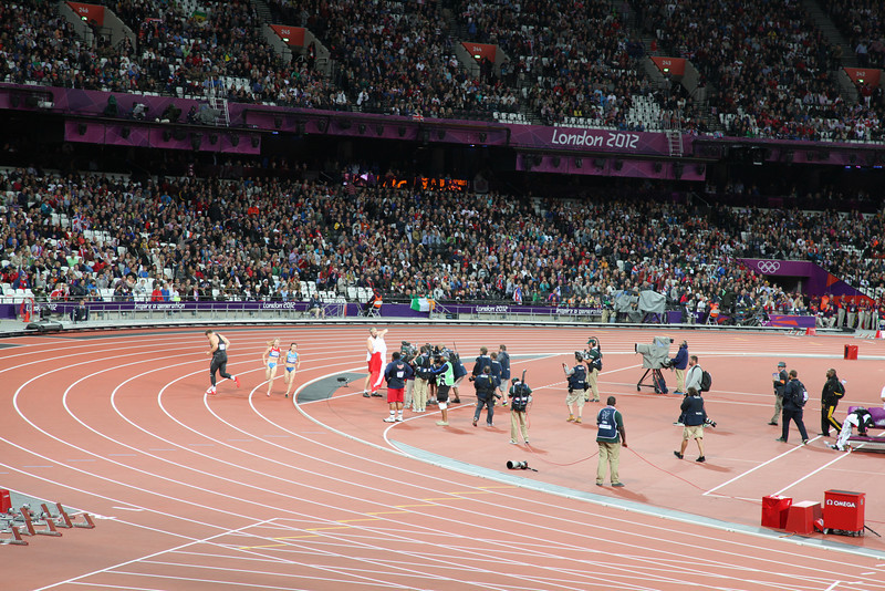 Больше всего следили, понятное дело, за бегом. Видели как Эннис бежала (очень быстро!). Опять же - порадовали болельщики. Стадион гудел и поддерживал абсолютно всех бегунов. Там одна спортсменка сильно отбилась от группы и финишировала гораздо позже лидеров. Но ей хлопали не меньше победителей. И это здорово :)