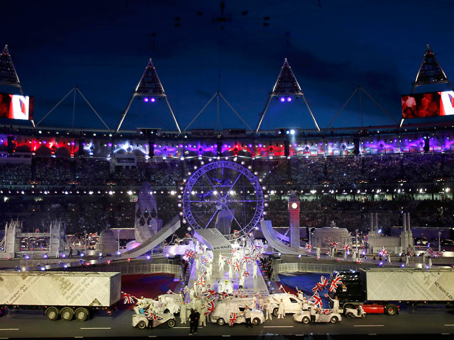 Хаотичное движение людей и автомобилей нарушил актер в образе Уинстона Черчилля, который навел на сцене порядок. После этого на Олимпийском стадионе прозвучал гимн Соединенного королевства.