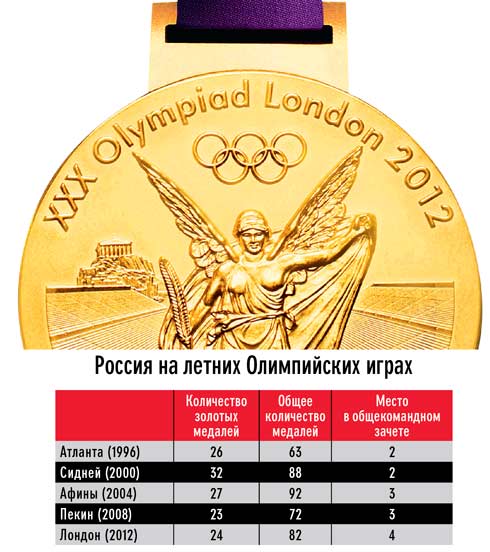 Проведя ударный уик-энд на Олимпиаде в Лондоне, сборная России завершила игры с 82 медалями, 24 из которых — золотые. Спортивные руководители страны уже выразили полное удовлетворение достигнутыи результатом, отметив, что мы превысили показатели прошлой Олимпиады в Пекине на 9 медалей, в том числе на одну золотую. И это истинная правда, но правда и то, что впервые в новейшей истории российская олимпийская команда оказалась за пределами первой тройки в общем зачете. Отметим, что традиционно по ранжиру олимпийского зачета команды выстраиваются именно по количеству золотых медалей. И здесь мы уступили не только ушедшим далеко вперед сборным США (40 золотых) и Китая (38 золотых), но и команде хозяев — Великобритании (29 золотых).