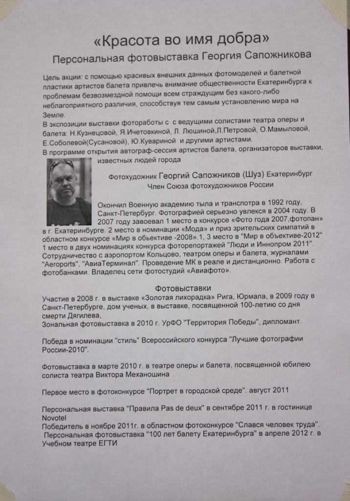 но и поблагодарить Георгия за его талант, рассказать о сложности восприятия изображений балетными артистами и фотографом: