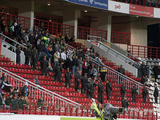 Стадион "Локомотив" за хулиганские действия болельщиков во время матча Лиги Европы между "Анжи" и АЗ предлагают дисквалифицировать. Напомним, московские фанаты были недовольны тем, что махачкалинцам предоставили их арену в аренду, и пришли поддержать за голландцев, активно оскорбляя при этом номинальных хозяев.