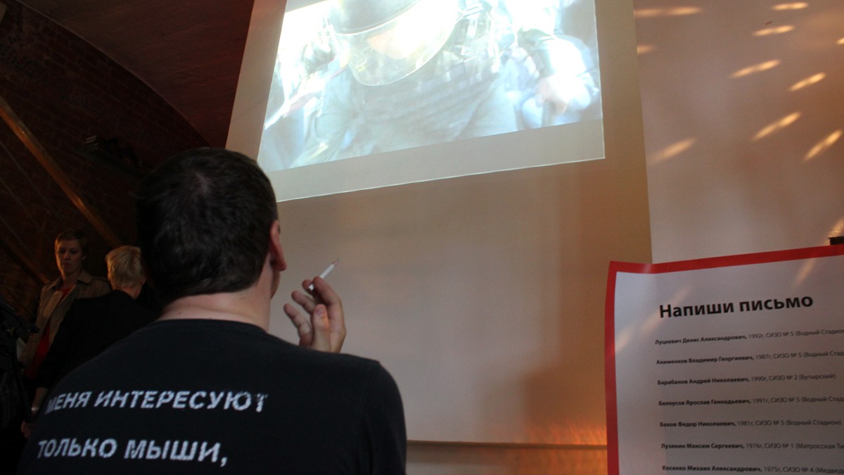 При входе в клуб ArteFAQ был вывешен список обвиняемых – вместе с указанием, в каком конкретно СИЗО кто находится. Всем предлагалось написать письмо узнику. Писатель Лев Рубинштейн признался, что лично ни с одним из арестантов не знаком, однако собирается послать за решетку весточку: