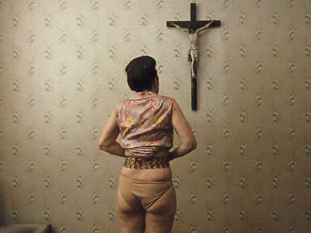 "Рай: Вера" - второй фильм трилогии Зайдля о любви и женском теле. Первую часть - "Рай: Любовь" - показывали на фестивале в Каннах. Там речь шла о даме за пятьдесят, которая отправляется за сексуальными утехами в Кению. Дочь и кота она при этом оставляет у сестры, про которую как раз и снят венецианский фильм. Ее зовут Анна-Мария, она живет в одиночестве в просторном доме, работает медсестрой в рентгенологии, а отпуск проводит за богоугодными делами: молитвенными собраниями и проповедями - носит статуэтку Мадонны в специальном шелковом мешочке по квартирам, несмотря на ожесточенное сопротивление их обитателей. Как объясняет сам режиссер, "любовь Анны-Марии к Иисусу все время растет, и в конце концов естественным образом перерождается в физическое притяжение", что демонстрируется в сцене мастурбации с участием распятия.