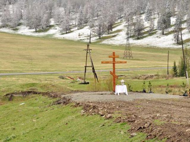 Православный крест был установлен в селе Топучая и освещен 26 мая этого года. На его месте планировалось вскоре поставить часовню и мемориал в честь памяти строителей Чуйского тракта. Дорогу, которую Василий Шукшин сравнивал со следом от бича, хлестнувшего по горам, строили заключенные - в 1930-х годах неподалеку от Топучей был лагерь.