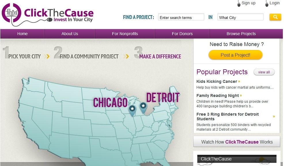 СlickTheCase предоставляет некоммерческим организациям легкий способ собрать средства на реализацию какого-либо проекта, будь то социальная программа, мероприятие или же строительство целого здания. Основное требование к проектам – социальная направленность. Для того, чтобы получить возможность размещать проекты на сайте, организация должна соответствовать ряду требований, в частности, иметь 501(с)3 статус (быть неправительственными организациями).