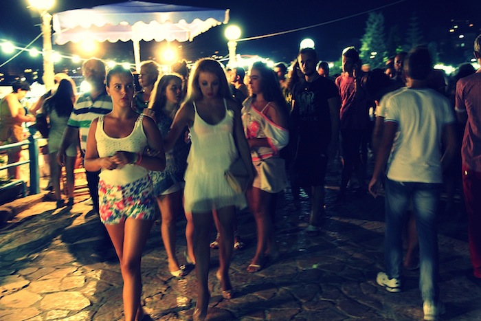 Албания — это типичная балканская и в то же время средиземноморская страна. А квинтэссенция жизни на Балканах — вечерний променад по главной улице города. Это такой очень региональный ритуал, когда все жители города, от мала до велика, после жаркого дня выходят прогуляться. Обычно это центральная пешеходная улица с ресторанчиками и уличными музыкантами, переносными лавками с кукурузой и попрошайками. И даже не имеет значение, где находится город — в горах или у моря. В каждом городе на Балканах найдётся такая улица, куда люди приходят показать себя и посмотреть на других. И так примерно с семи-восьми вечера и почти до полуночи — вперёд и назад, назад и вперёд по одной улице. Вместе со стариками и детьми, до поздней-поздней ночи. Каждый день. Просто гуляют, разговаривают, смотрят на других гуляющих, едят мороженое, пьют кофе, поедают свежезажаренное мясо. В общем — наслаждаются настоящим и своей простой жизнью. Еда