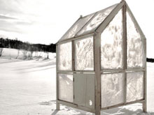 Стены дома образуют мелкая проволочная сетка и превратившаяся в лед озерная вода. Архитекторы надеются, что летом по этим проволочным стенам будут расти вьющиеся растения.