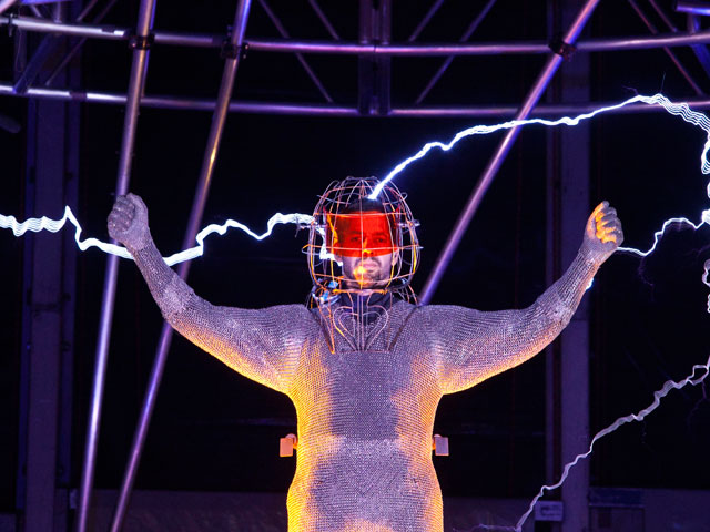 Для защиты от молний и колоссального напряжения 39-летний фокусник одет в кольчугу из нержавеющей стали весом 12 кг и шлем с козырьком, предохраняющим глаза от ультрафиолетового излучения. В снаряжение Блейна входят также специальные наушники, которые не только блокируют сильный шум, производимый трансформаторами, но и позволяют фокуснику общаться со зрителями. Обут иллюзионист в ботинки с железной подошвой.