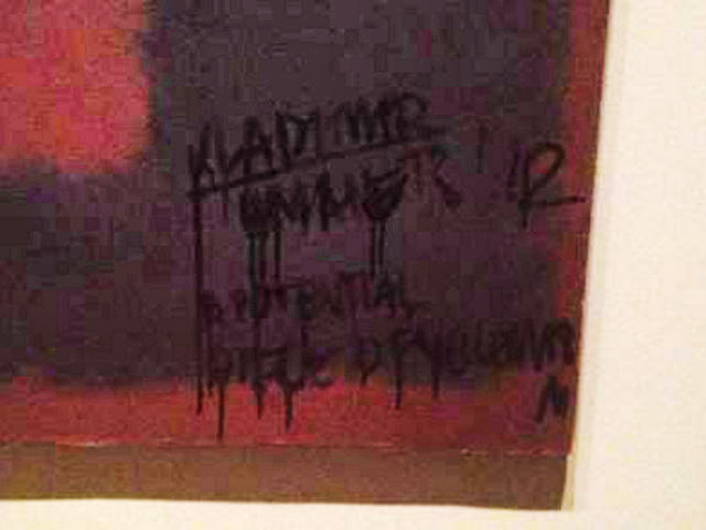 На одной из них он написал чернилами по-английски: "Vladimir Umanets '12, a potential piece of yellowism" (Владимир Уманец '12, потенциальное произведение желтизны). Затем россиянин спешно покинул помещение.