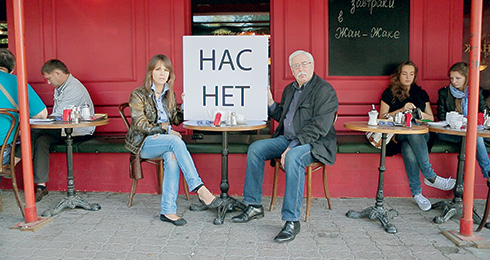 Совсем другие смыслы предлагает отечественный производитель: Владимир Путин, сидящий в окружении подобострастных Екатерины Андреевой и Эрнеста Мацкявичюса, начальник, выслушивающий своих граждан, которые готовы в любую погоду стоять на улице во всех уголках страны, дожидаясь своей очереди на «прямой линии».