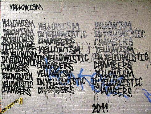 Все может стать частью йеллоуизма — и стул, и стакан с водой, и исписанная стена Во имя искусства