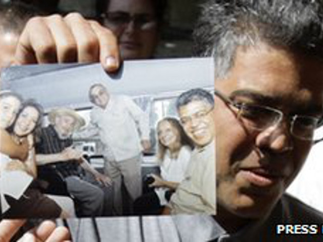 Венесуэлец также продемонстрировал журналистам фотографии со встречи, на которых запечатлен улыбающийся 86-летний политик в сомбреро, вместе с женой Далией Сото дель Валье и директором "Националя" Антонио Мартинесом.