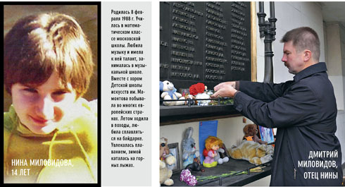 «Если бы к нам отнеслись по-человечески, объяснили бы, что произошло, возможно, большая часть заявителей в Европейский суд не пошла бы. Но нас держат за идиотов, — говорит Дмитрий Миловидов, мужчина средних лет с пышными русыми усами и голубыми глазами. У Миловидова погибла 14-летняя дочь Нина, которая пришла посмотреть мюзикл вместе с младшей сестрой — 12-летней Леночкой, которую террористы отпустили вместе с другими малолетними детьми. По решению Страсбурга Миловидовы получили компенсацию — €26 400. «Мы затевали все это не ради денег, — объясняет Дмитрий. — Это фактически деньги из нашего кармана. Бюджет выплачивает компенсации по решению Европейского суда… Мы хотели заставить российское правосудие работать. К сожалению, с российским правосудием нам приходится общаться через Страсбург». Впереди — подача жалобы в Комитет министров Совета Европы и Следственный комитет РФ с требованием наказать виновных за гибель детей и взрослых. „