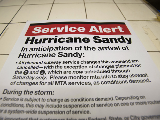 Общественный транспорт в Нью-Йорке остановят из-за урагана "Сэнди"