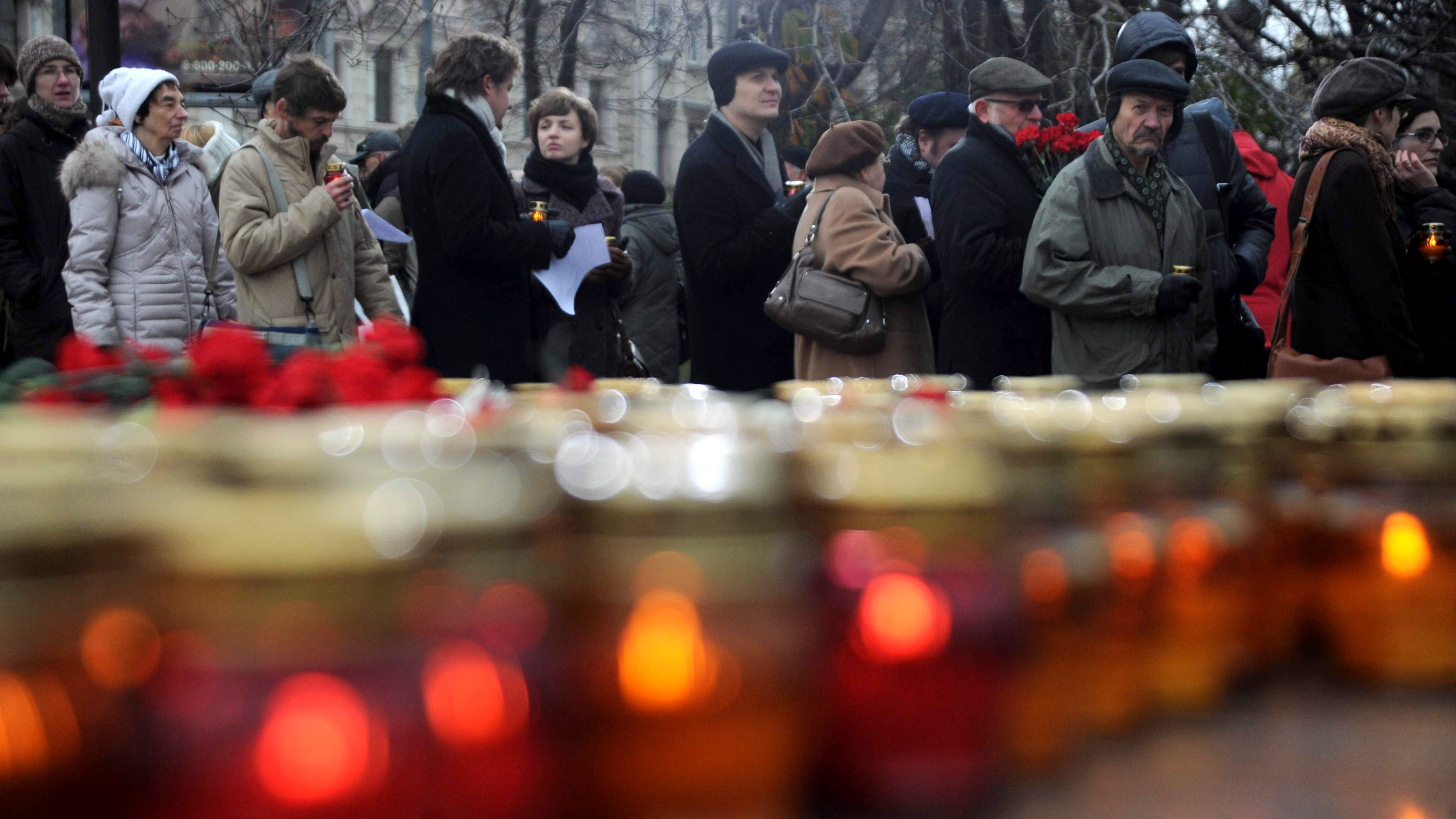 Накануне у Соловецкого камня на Лубянской площади сотни людей приняли участие в традиционной акции "Возвращение имен", организованной центром "Мемориал". Зачитывались имена репрессированных и даты их расстрела.