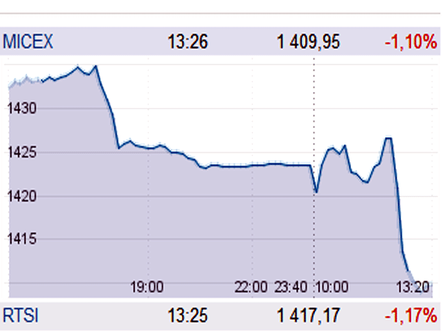 Торги на Московской бирже начались в первый день ноября со снижения основных индикаторов. Индекс ММВБ потерял 0,22% и составил 1 422,52 пункта, индикатор РТС снизился на 16% до отметки в 1 431,62 пункта.