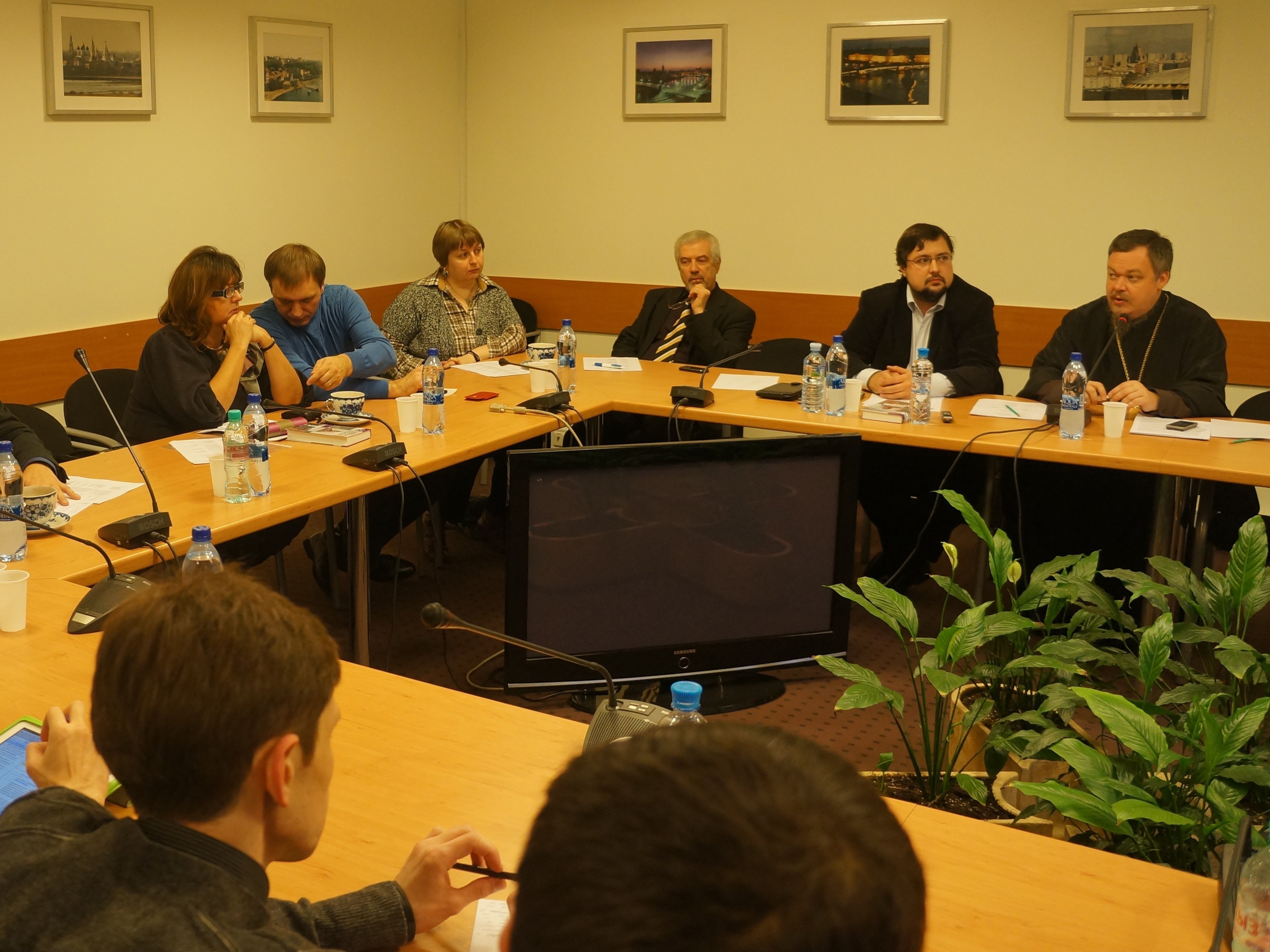 По словам редактора отдела «Экономика» журнала «Однако» Маринэ Восканян, в обществе в информационном поле идет «холодная гражданская война», в которой граждане разделены на «непримиримые части» и надо все-таки попытаться наладить общение между этими частями. Однако идея диалога с «оппозиционными силами» у большинства ораторов вызвала негативную реакцию. Яростно выступили против этого Председатель византийского клуба «Катехон» Аркадий Малер и глава Центра либерально-консервативной политики «Великая Россия» им. П.А. Столыпина и П.Б. Струве Александр Казаков. По их мнению, идти на переговоры с оппозиционными силами совершенно недопустимо. Кто-то даже сказал, что на Болотную площадь выходили «клоуны». Похоже, по мнению участников мероприятии, именно эти люди и являются главными врагами РПЦ.