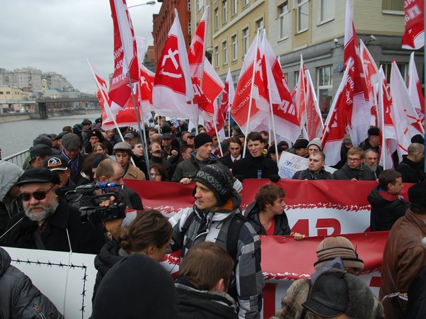 Пока участники шествия собирались, на набережной всем желающим раздавались ленточки с цветами имперского флага (его используют как свое знамя многие российские националисты). Нельзя сказать, что все участники «марша» были похожи друг на друга. Они различались и по возрасту, и по внешнему виду, и по идеологическим предпочтениям. Кто-то из них образовывали отдельные колонны: Союз православных хоругвеносцев, национал-социалисты, национал-демократы и т.д. В подобных колоннах присутствовала и своя собственная символика.