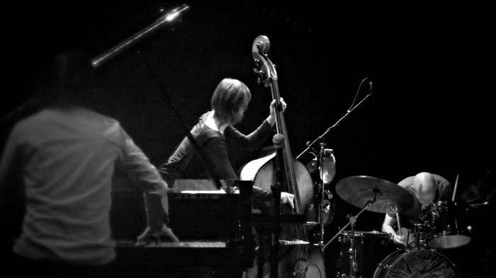 Кристина Туоми . Фото: Дмитрий Ермаков И еще одно наблюдение, подтверждающее актуальность и даже некую мейнстримность нового европейского джаза: на фестивале в «Школе драматического искусства» молодые музыканты звучали более свежо и новаторски, нежели старшие коллеги. Даже заслуженный маэстро Йоаким Кюн — и то на фоне группы [em] Trio показался весьма старомодным, играя в проторенном русле академического авангарда XX века (что, конечно не умаляет глубины его игры, обусловленной недюжинным талантом и многолетним опытом). Молодые же удивили заразительной легкостью настроения даже при порой сложных формах композиции. Уже упомянутые [em] Trio, например, заявляют, что хотят слышать в джазе панк — и это получается, хотя по форме никакого панка там и нет. А аккомпанирующий себе соло на рояле певец Йенс Томас порадовал публику диапазоном вокальной игры в духе если не Бобби МакФеррина, то как минимум своего соотечественника Питера Фесслера, выступавшего в Москве в 2008 году. Кстати, Йенс тоже ищет в джазе бунтарства — но не панка, а рока: он цитирует в своих песнях AC/DC и даже исполняет кавер-версии их композиций.